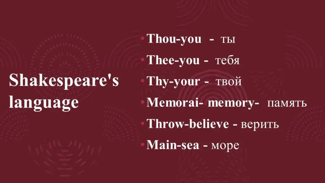 Шекспир написал 37 пьес, 154 сонетa, 2 поэмы. В те времена английский язык значительно отличался от того варианта, который мы с вами изучаем сегодня. Многие слова произносились иначе. |