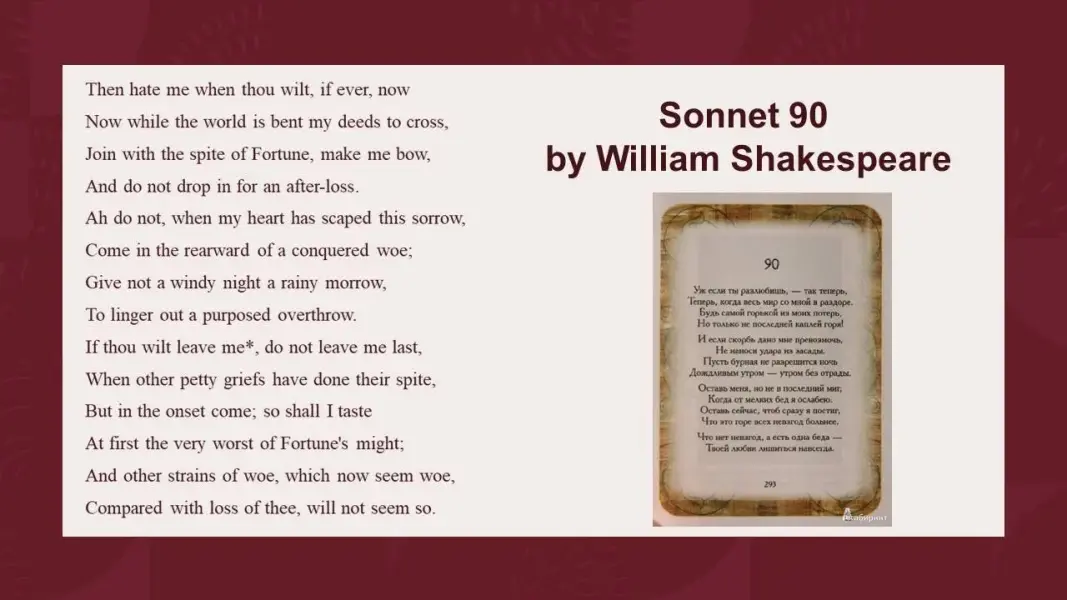 Сонеты Шекспира не просто переводили. Некоторые из них ложились на музыку. Так, слова одной из песен Аллы Пугачёвой «Уж если ты разлюбишь, так теперь…» являются переводом сонета 90.