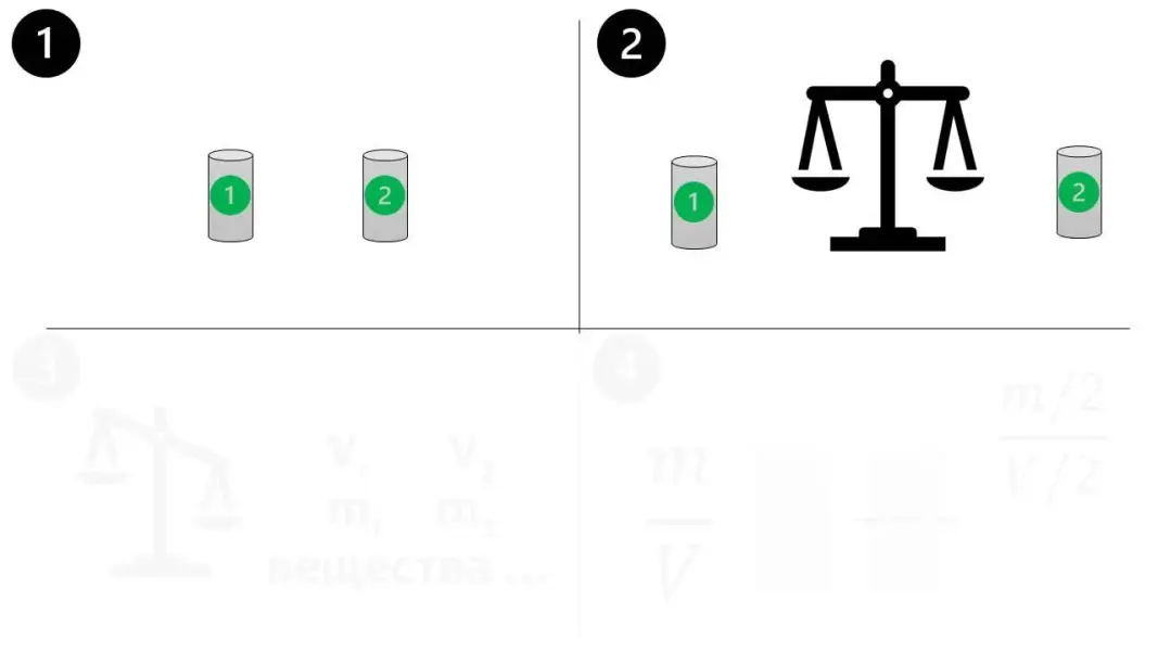 Слайд 18. Представите, что мы разделим цилиндр пополам. Во сколько раз уменьшатся масса и объём?