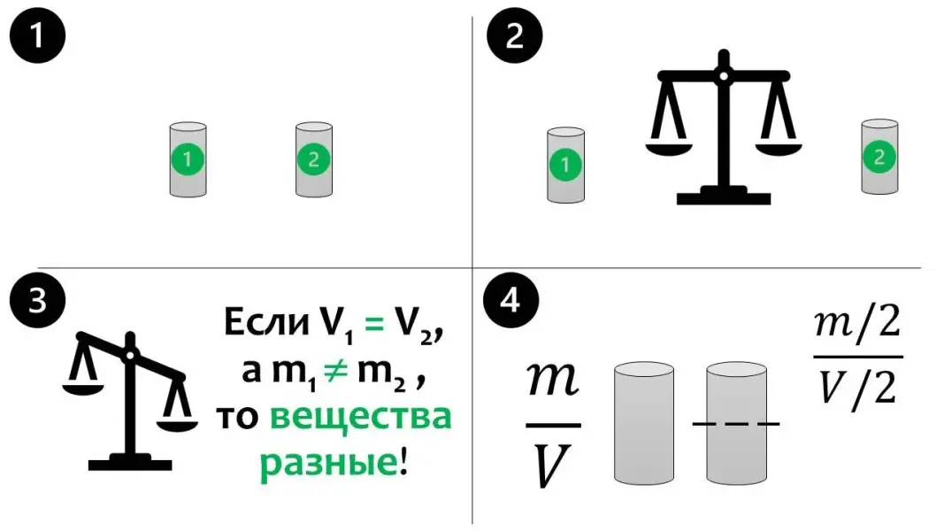 Верно, в два раза уменьшится масса, и в два раза уменьшится объём. А как изменится значение величины m/V?