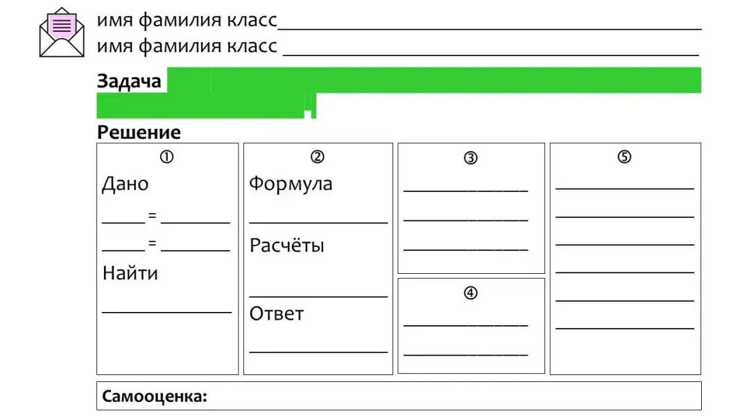 - Один лист с задачей (распечатка на цветном, например светло-розовом, листе А4). На столах одного ряда задачи одинаковые. В разных рядах задачи разные. Приведены на слайдах № 60, 61, 62 в презентации.