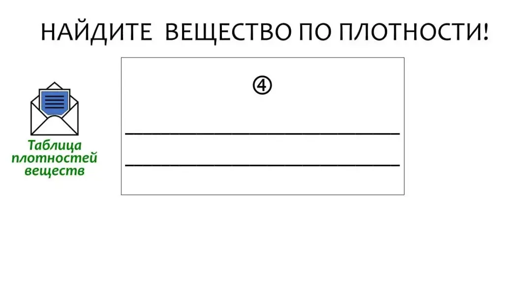 - Одна Таблица плотностей веществ (распечатка на цветном, например синем, листе А4). Файл с Таблицей плотностей веществ - Приложение 1.