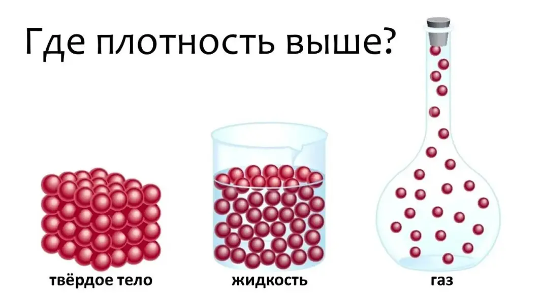 Верно, твёрдое - большая плотность, жидкое - средняя, газообразное - маленькая плотность.