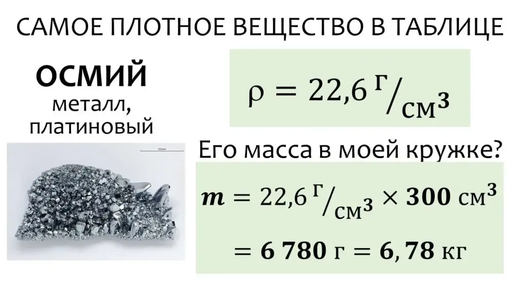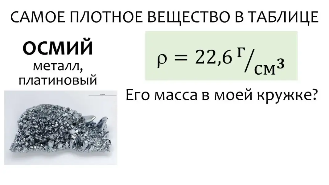 Слайд 46. Да, это осмий. Посчитайте его массу в моей кружке. Сколько получилось?