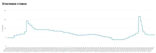 Благодаря этому графику мы видим ключевую ставку ЦБ и можем подсчитать доходность за долгосрочные вложения. На данный момент мы видим, что годовой процент данного банка 7,5%. Мы рассмотрим несколько вариантов, таких как если бы мы попали на момент когда годовой процент был 20%, а так же если бы мы попали на что-то среднее взяв среднее арифметическое от этих чисел.
