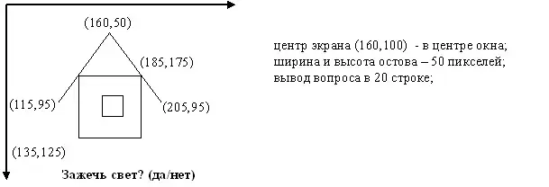 Затем вместе с учениками определяется вид дома и производится необходимый расчет координат точек, по которым будут проводиться линии.