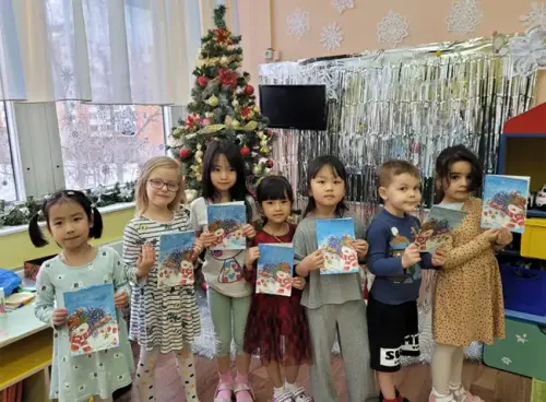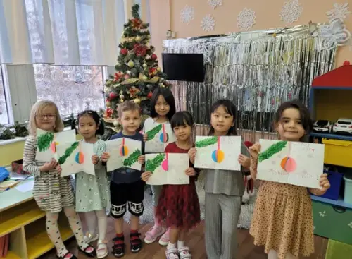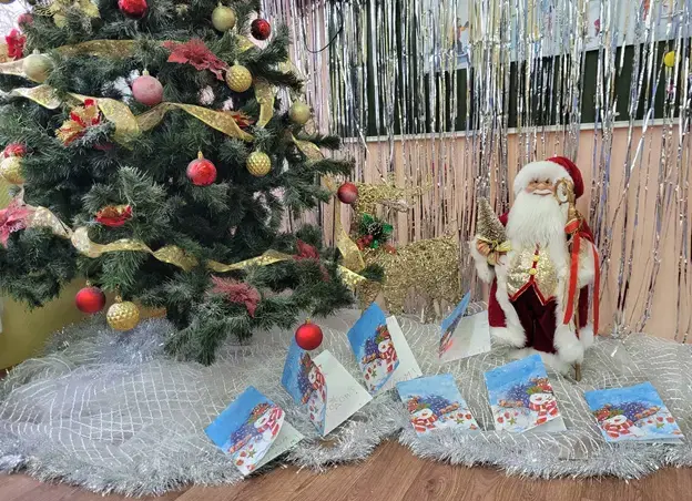 К Новому году теперь у нас есть поздравительная открытка, сделанная своими руками.