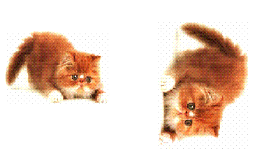 В этом окне мы выбираем действие, которое необходимо произвести над рисунком: отразить слева направо, отразить сверху вниз или повернуть на угол. Посмотрите на экран и скажите, какие изменения произошли с котятами? <Рисунок 2>, <Рисунок 3>