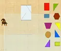 Игра «Коврик». Щенку очень понравился домик, он устал, хочет спать. Для сна ему нужен коврик. На слайде появляется образец коврика и разбросанные геометрические формы. Воспитатель предлагает из них собрать коврик. Ребёнок «мышкой» выбирает фигуры, лишние исчезают. |