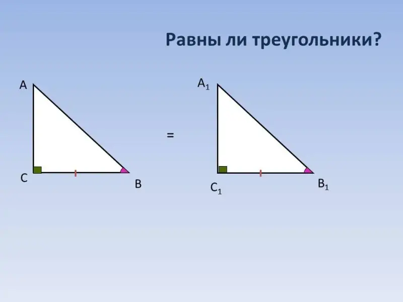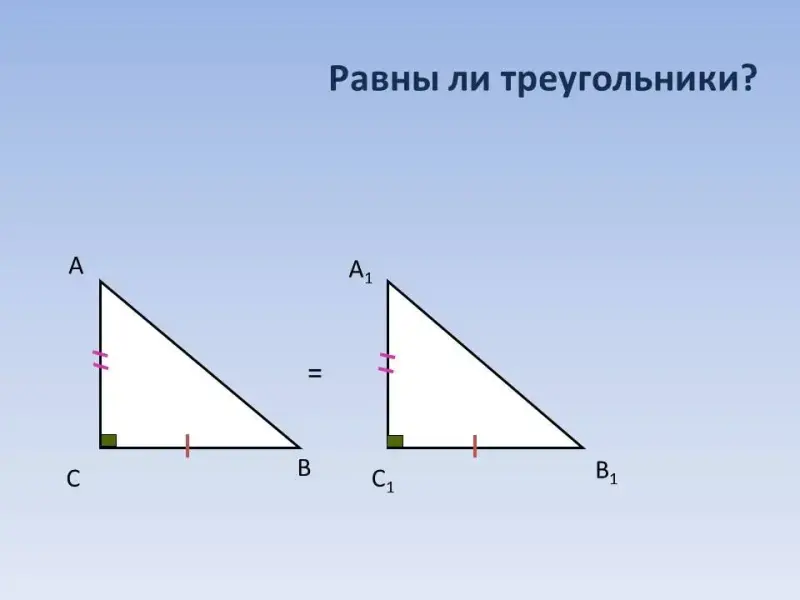 Признаки равенства прямоугольных треугольников.