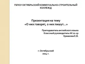 Методическая разработка классного часа. Тема: «О них говорят, о них пишут…»