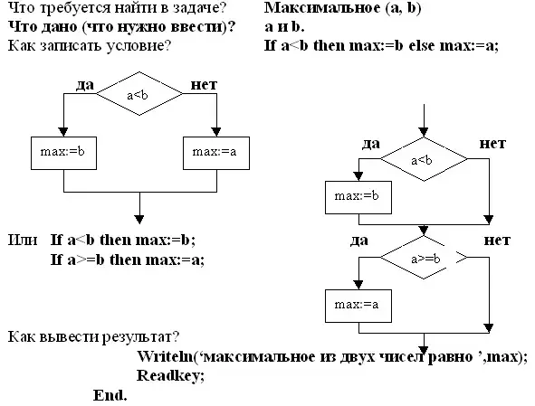 - при выполнении условия выполняется один блок действий, а при невыполнении - другой блок действий.
