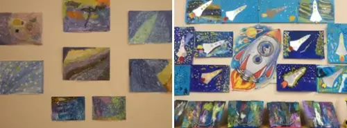 - Иллюстрации и плакаты: « Земля из космоса», «Звёздное небо», «Планеты Солнечной системы», портрет первого космонавта Ю.А.Гагарина, портреты космонавтов, «Созвездия», плакаты планет.