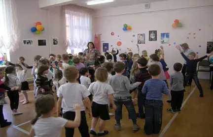 1. Воспитатель предлагает детям отправиться в космическое путешествие с целью узнать больше интересного и познавательного о космосе. Для этого дети должны занять свои места на первом космическом корабле - спутнике «Восток». (Дети садятся на лавочки под музыку), командиром космического корабля является воспитатель, так как он будет вести рассказ. Космический корабль к полёту готов, и дети начинают вести обратный отсчёт (от 10 до 1) (Можно использовать запись запуска ракеты со словами Ю.А.Гагарина «Поехали!»).