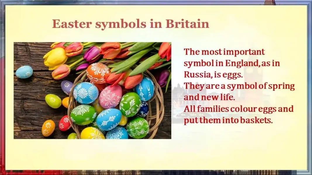 Слайд 14: Заголовок «Easter symbols in Britain»