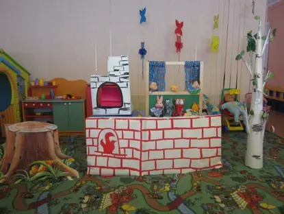 Оборудование: Ширма, игрушки бибабо, печка из картона, дерево, пенёк, аудиозапись песни Т.Морозова "Колобок".
