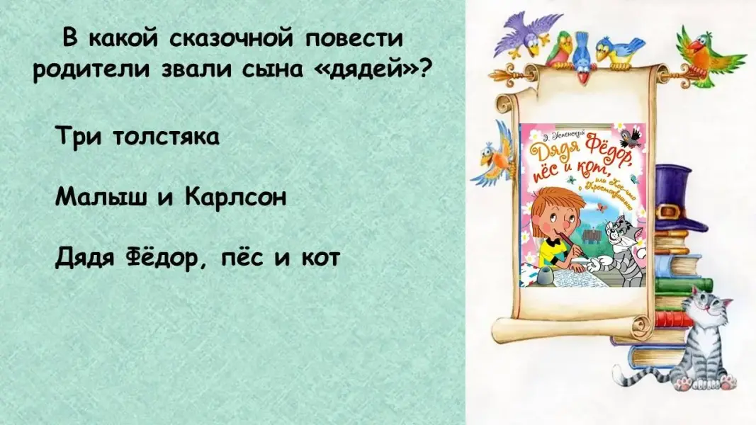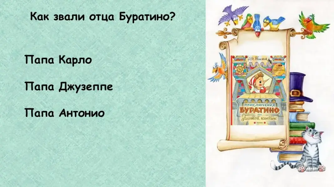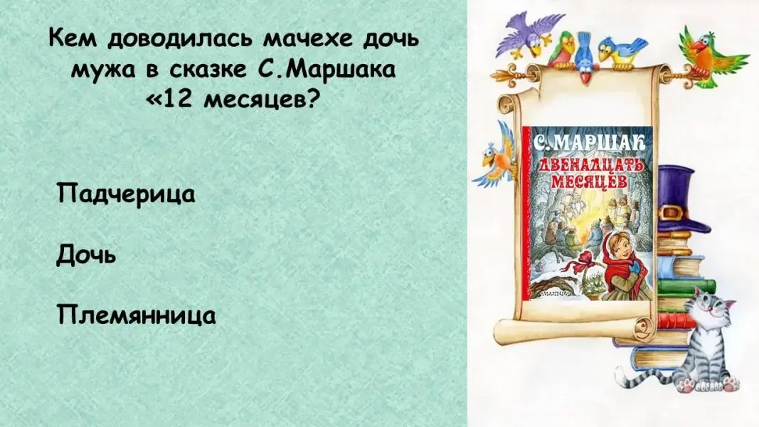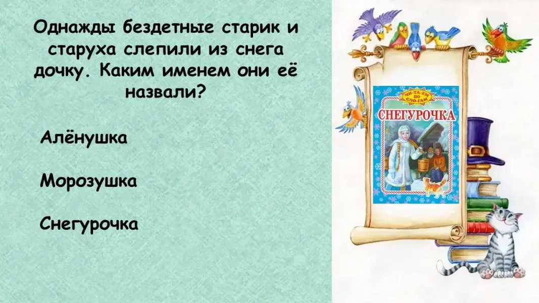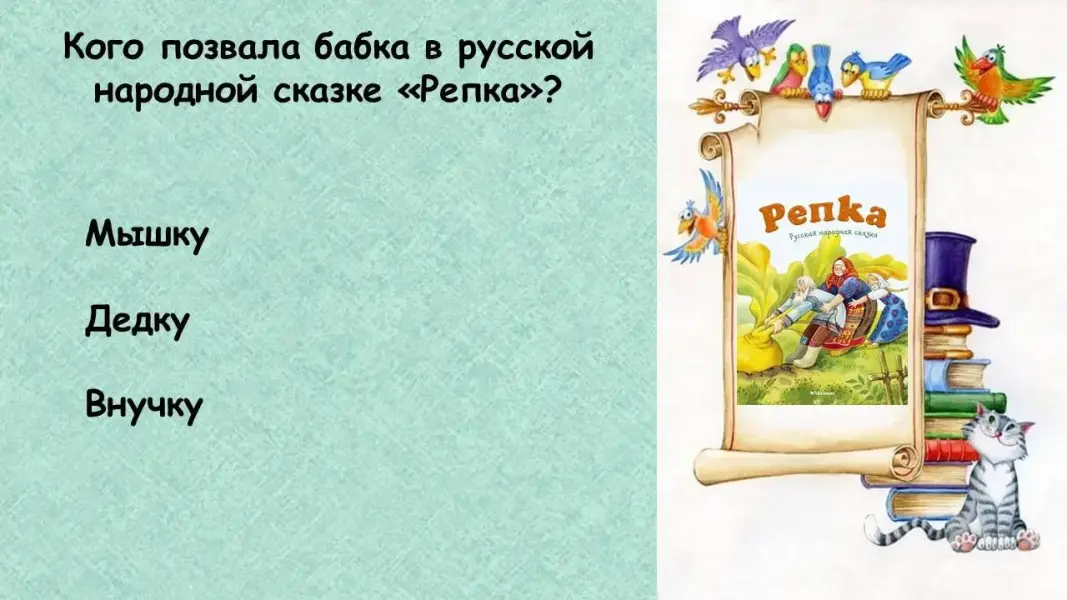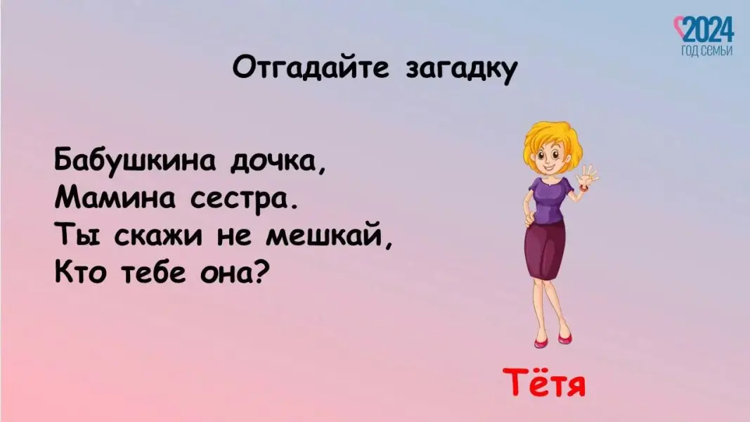 Педагог: Тема семьи есть во многих сказках, рассказах, стихотворениях… Сейчас я предлагаю вам ответить на вопросы викторины «Семья на страницах книг».