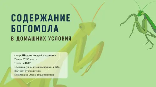 Презентация по окружающему миру "Может ли богомол жить в домашних условиях?". 2-й класс