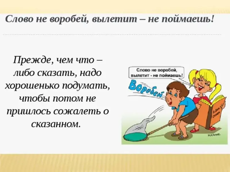 - Слово - не воробей: вылетит - не поймаешь.