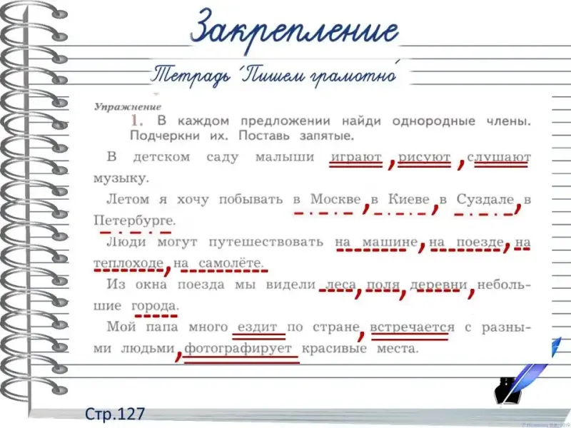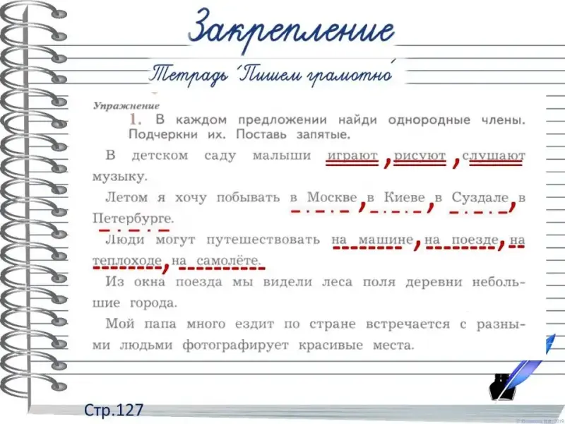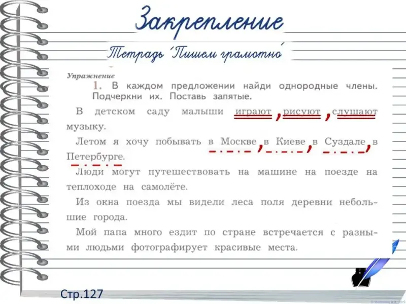 Презентация к уроку русского языка в 3-м классе по теме "Знаки препинания при однородных членах предложения"