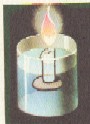 Воткнём снизу посредине свечи кнопку или небольшой гвоздик для того, чтобы свеча, плавая у поверхности воды, сохраняла вертикальное положение и не опрокидывалась. Если плавающую свечу зажечь, её вес будет постепенно уменьшаться, но и объём погружённой в воду части свечи также будет становиться всё меньше и меньше. Равенство между весом свечи и выталкивающей силой не будет нарушаться.