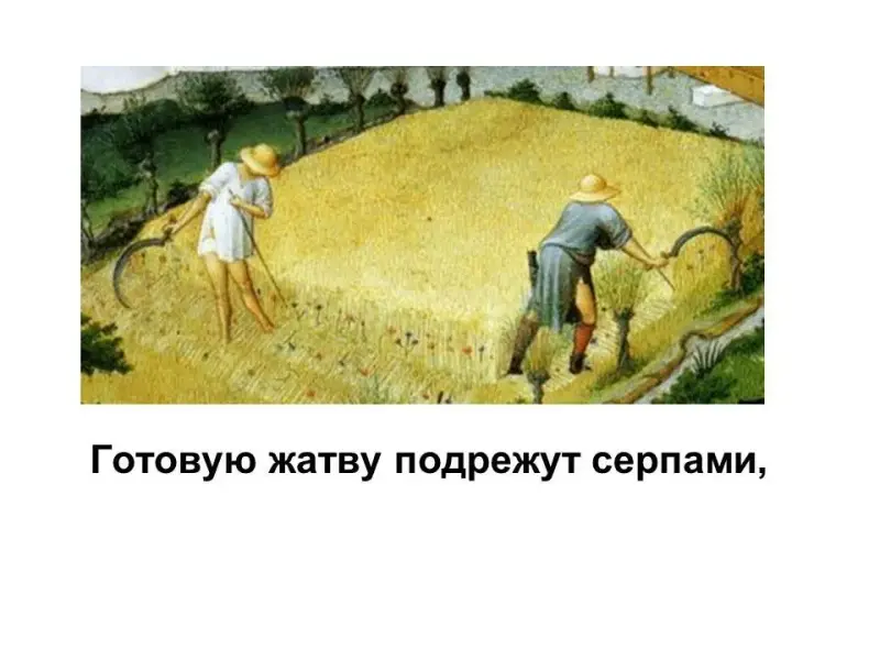 Готовую жатву подрежут серпами,