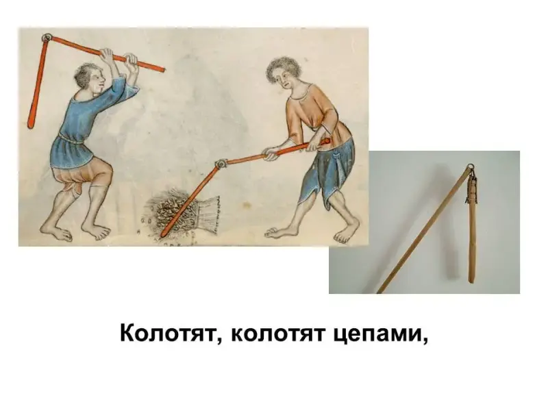 Просушат, колотят - колотят цепами,