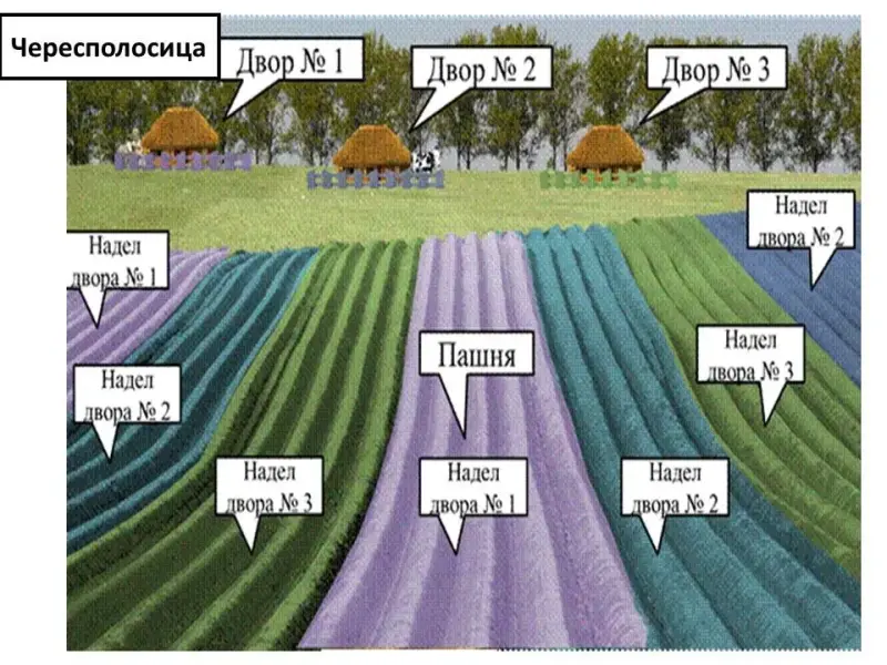 - Все крестьяне в деревне были объединены в общины, они и ведали, в частности, делением земли между семьями на полосы. (СЛАЙДЫ 24-25).