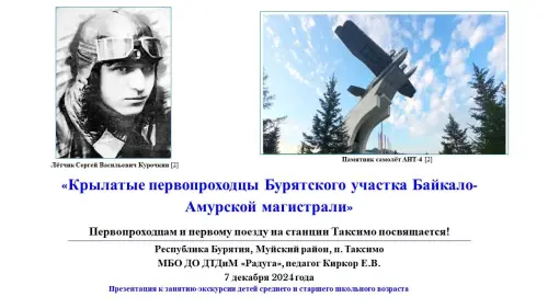 Презентация к конспекту занятия "Крылатые первопроходцы Бурятского участка Байкало-Амурской магистрали"
