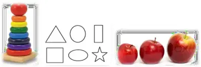 Учить пониманию и называнию признаков предметов (цвета, размера, формы):