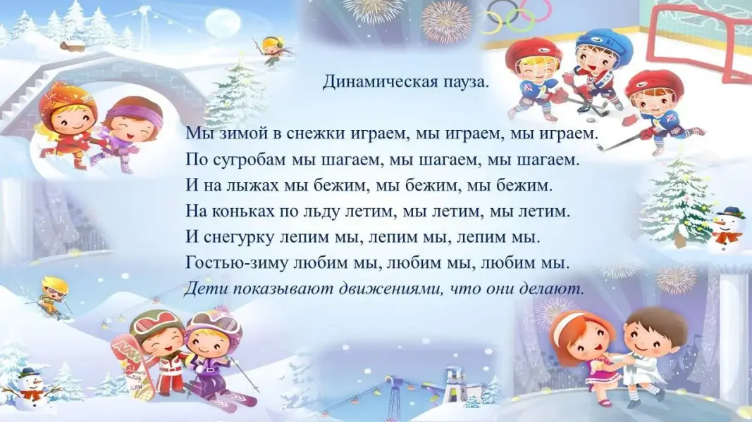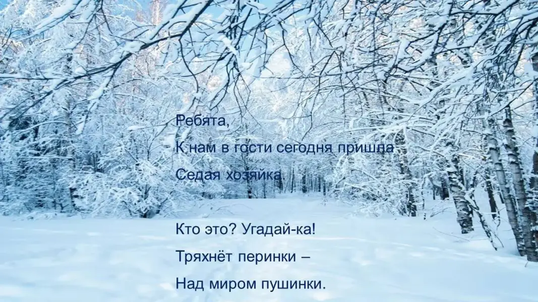 Логопед: - Зима принесла в своих волшебных рукавах много новых зимних слов. Но чтобы зима подарила нам эти слова, мы должны постараться и отгадать их.