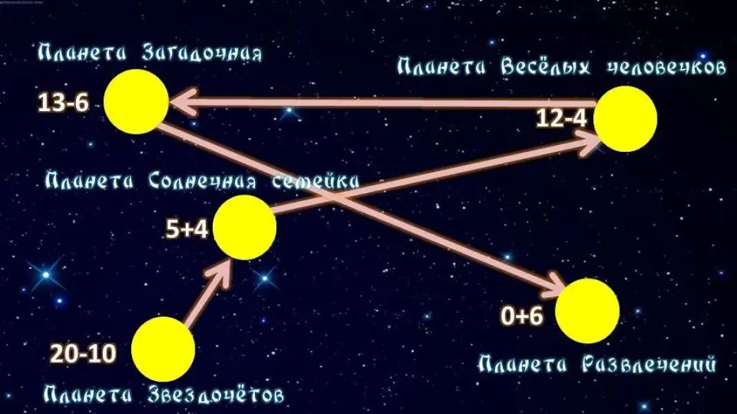 - Транспорт для путешествия готов. Осталось определить маршрут. Сразу оговорюсь, что названий планет, обозначенных в нашем маршруте, не существует на самом деле. Тем интереснее, не правда ли? Ведь это игра!