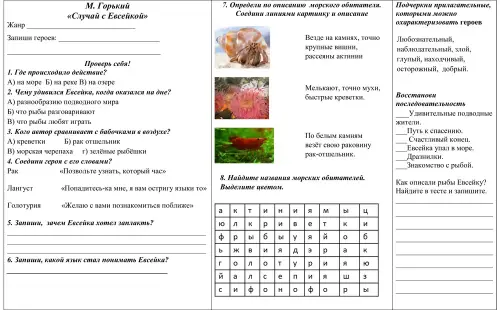 Рабочий лист по литературному чтению «М. Горький "Случай с Евсейкой"». 3-й класс
