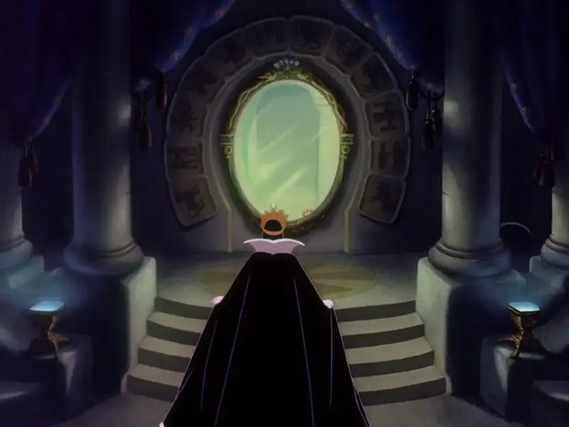 Queen: Slave in the Magic Mirror! Come here! I want to see your face! Speak!