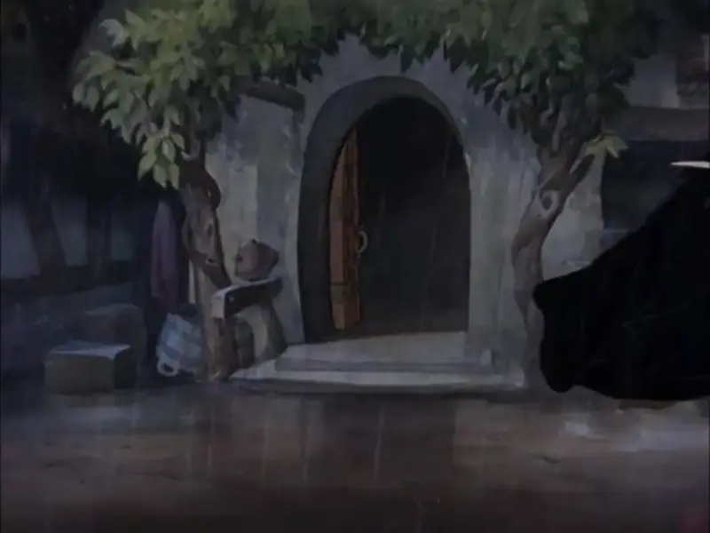 Queen: Oh! My heart! Take me into the house and let me rest! A drink of water, please! Белоснежка усаживает её и дает воды.