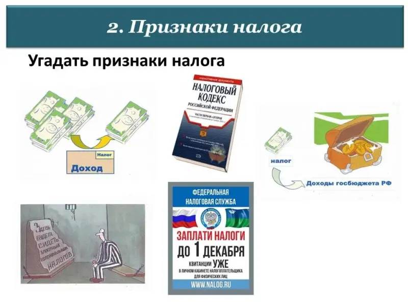 - Угадайте признаки налога по картинке (СЛАЙД 7).