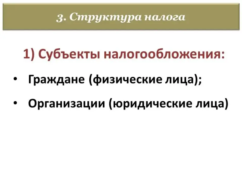 1) Субъекты налогообложения (налогоплательщики) (СЛАЙД 9):