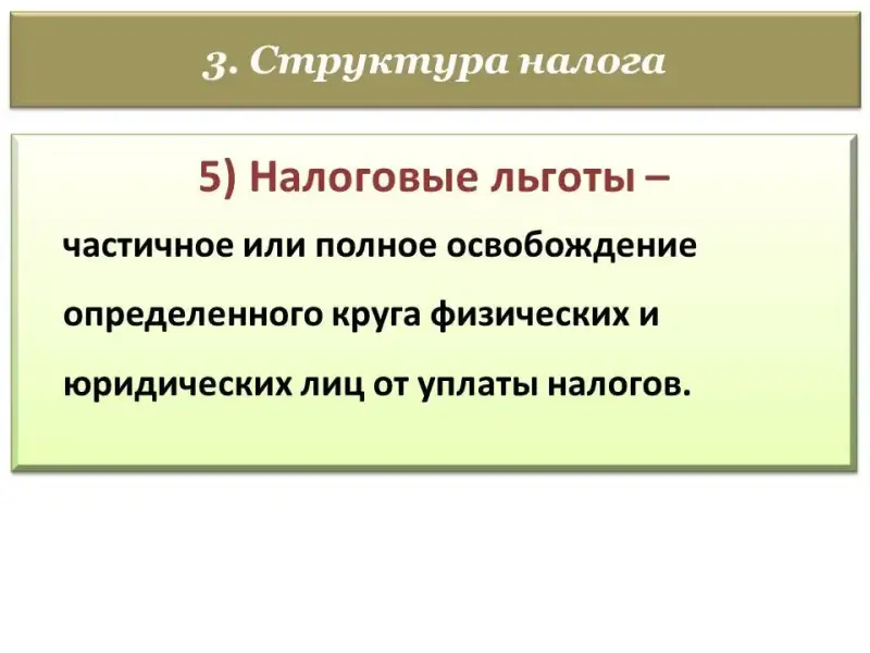 Налоговые льготы - частичное или полное освобождение определенного круга физических и юридических лиц от уплаты налогов.