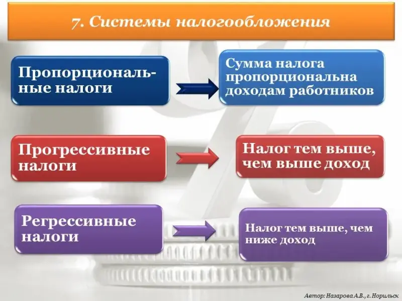 - Прогрессивный налог - налог тем выше, чем выше доход.