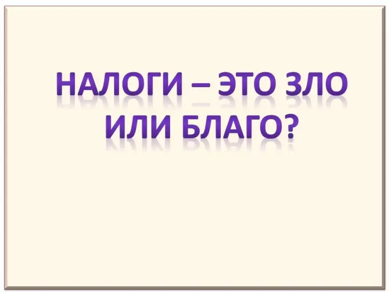 - Так что же представляют собой налоги - зло или благо? Мы сегодня с вами должны составить об этом свое собственное мнение и выразить его с помощью весов, где на одну чашу вы соберете аргументы в пользу налога, а на другую - против.