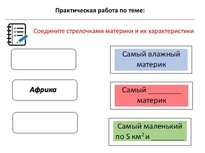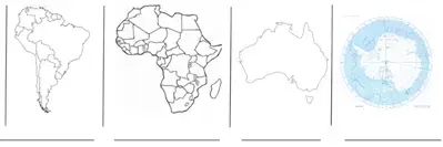 Ребята, перед вами лежат карточки: возьмите их и займите место за тем столом, где изображен ваш материк.
