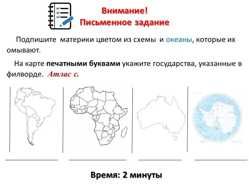 - Ребята, контур какого материка вы подписали, но мы его ещё не изучали?