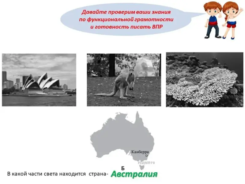 Ответ: страна Австралия (Б) и часть Света: Австралия