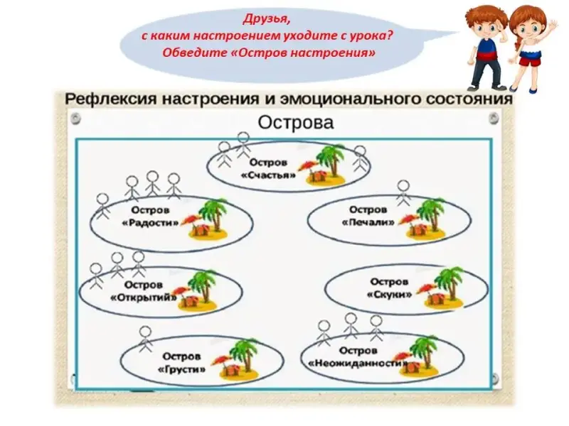 Друзья, с каким настроением уходите с урока? Обведите «Остров настроения».