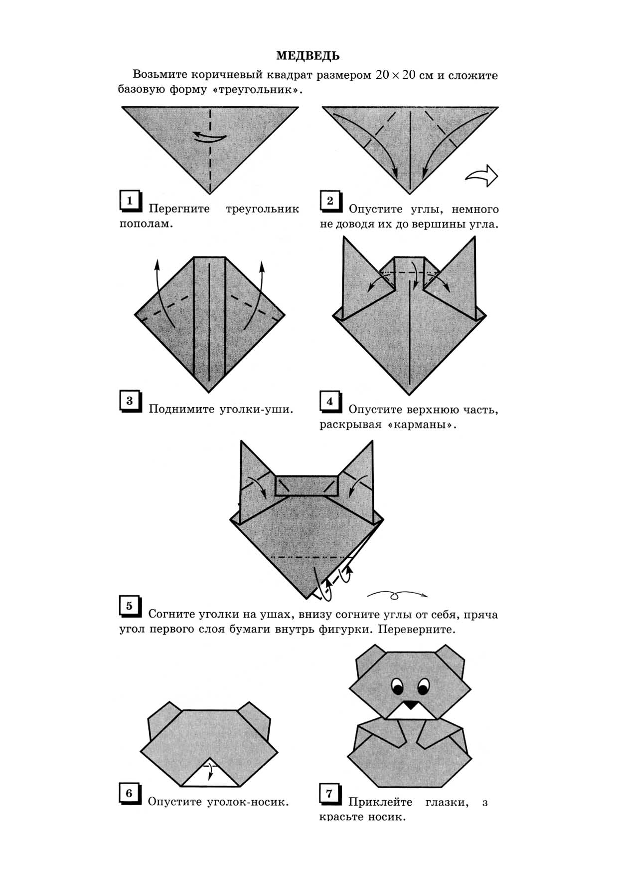 Урок труда в 3-м классе по теме: "Оригами. Медвежонок"