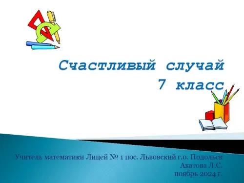 Акатова Людмила Сергеевна 25.03.2025 Математика Урок-игра "Счастливый случай" Курсы университета «Первое сентября» Работа выполнена в форме презентации Приложения pril.ppt (2.25 МБ) поделиться ВКонтакте Одноклассники Телеграм Копировать ссылку #урок-игра Похожие уроки