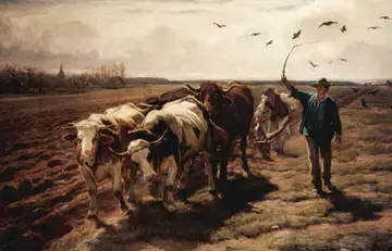 Рано поутру просыпались люди в деревнях: умывались, одевались, завтракали, да в поле работать выходили. Сначала выходили мужики, брали лошадь или вола, запрягали плуг и пахали землю, переворачивали ее снизу вверх. Отец шел за плугом, а старший сын вел лошадь или вола.