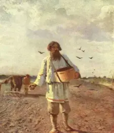 Когда земля была готова к севу, брали большие плетеные корзины, насыпали в них зерно, надевали через плече и шли засевать поля, разбрасывая зерно горстью.