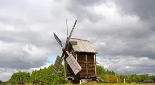 Потом зерно на элеватор везли, где его сушили и хранили. На элеваторе ветер с солнышком опять помогали, теплом солнечным сушили, ветром прохладным обдували. Люди часть зерен в мешки отсыпали, да на мельницу отвозили, а ветер - ветерок, опять тут как тут, старается, задувает, крылья мельницы крутиться заставляет, зерна в муку молоть помогает.