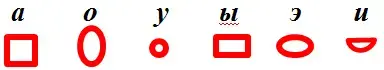Л. У доски мы поработаем с окончаниями прилагательных. Перед этим выполним подготовительную артикуляционную гимнастику (Демонстрирует ребёнку линейку моделей гласных). Произнеси гласные с чёткой сменой артикуляции. Сначала медленно 3, 4 …. Затем быстрее 3, 4…